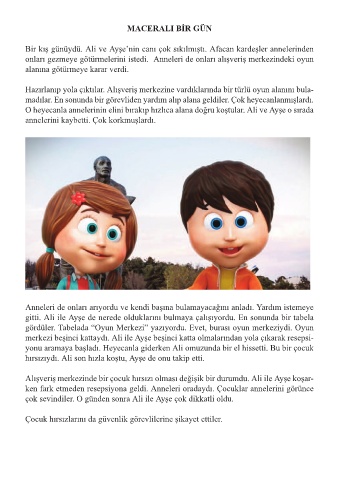 Hazırlanıp yola çıktılar. Alışveriş merkezine vardıklarında bir türlü oyun alanını bula-
