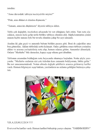ben gitmedim. Aklım tablodaki notta kalmıştı. Onlar gittikten sonra tabloyu yerinden