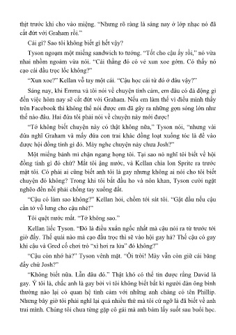 “Cậu có làm sao không?” Kellan hỏi, chồm tới sát tôi. “Gật đầu nếu cậu