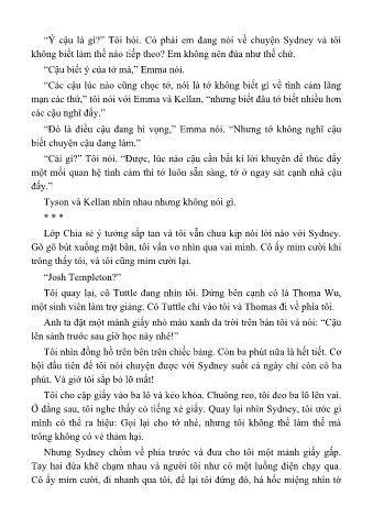 “Ý cậu là gì?” Tôi hỏi. Có phải em đang nói về chuyện Sydney và tôi
