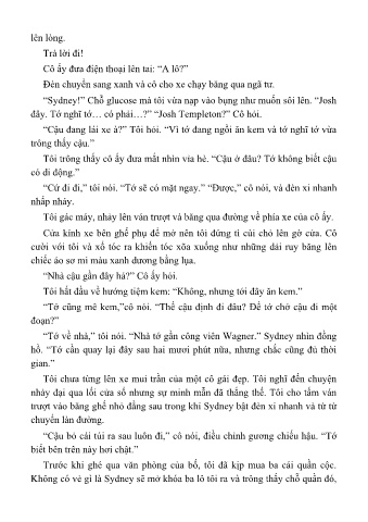 “Tớ về nhà,” tôi nói. “Nhà tớ gần công viên Wagner.” Sydney nhìn đồng