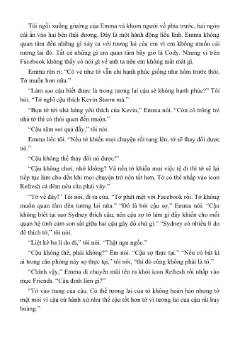 “Tớ về đây!” Tôi nói, đi ra cửa. “Tớ phát mệt với Facebook rồi. Tớ không