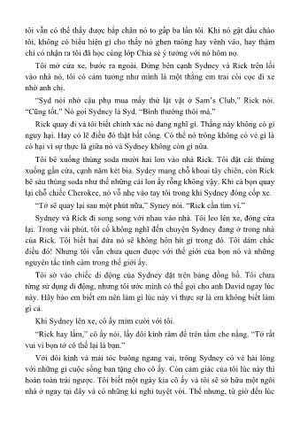 Sydney và Rick đi song song với nhau vào nhà. Tôi leo lên xe, đóng cửa