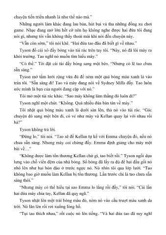 “Đừng lo,” tôi nói. “Tao sẽ để Kellan tự kể với Emma chuyện đó, nếu nó