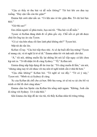 kịp nói ra. “Tớ đã nhận lời đi cùng Sydney.” “Ồ,” Kellan nói.
