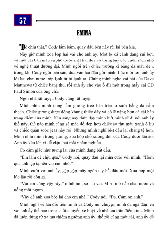 “Em làm dễ chịu quá,” Cody nói, quay đầu lại mỉm cười với mình. “Hôm