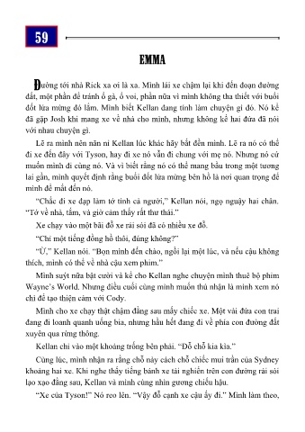 “Chắc đi xe đạp làm tớ tỉnh cả người,” Kellan nói, ngọ nguậy hai chân.