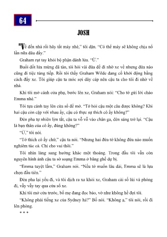 Khi tôi mở cánh cửa phụ, bước lên xe, Graham nói: “Cho tớ gửi lời chào