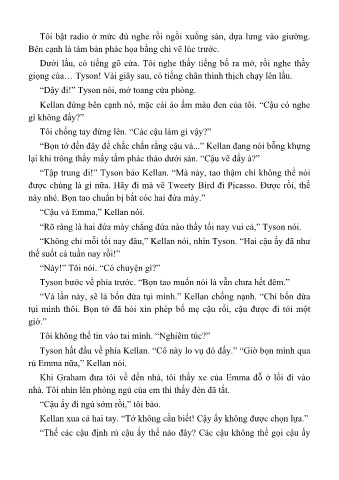 “Bọn tớ đến đây để chắc chắn rằng cậu và...” Kellan đang nói bỗng khựng