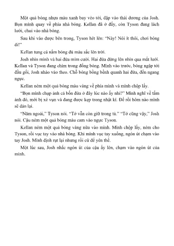 đầu gối, Josh nhào vào theo. Chỗ bóng bồng bềnh quanh hai đứa, đến ngang