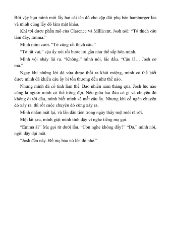 “Emma à?” Mẹ gọi từ dưới lầu. “Con nghe không đấy?” “Dạ,” mình nói,