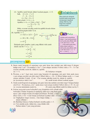 s = 12(7) + 2(7) – (7) 3 t = 6 Tip Pintar
