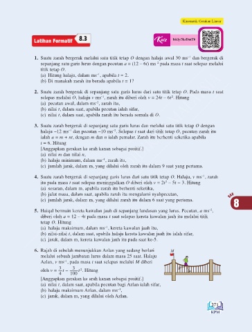 2. Suatu zarah bergerak di sepanjang satu garis lurus dari satu titik tetap O. Pada masa t saat