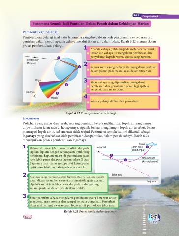 logamaya yang disebabkan oleh pembiasan dan pantulan dalam penuh cahaya. Rajah 6.23