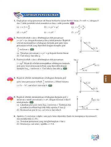 1. Ungkapkan setiap persamaan tak linear berikut ke dalam bentuk linear, Y = mX + c, dengan X