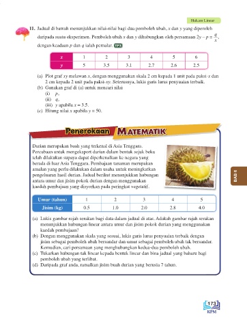 menunjukkan hubungan linear antara umur dan jisim pokok durian yang menggunakan