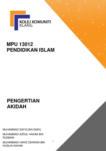 MPU 13012 PENDIDIKAN ISLAM PENGERTIAN AKIDAH MUHAMMAD SAFIQ BIN SAB’E MUHAMMAD AZRUL HAKIMI BIN RUSMAN MUHAMMAD HARIZ ZAKWAN BIN 1 ROSLIN RAHIMI