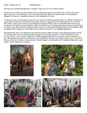 our left. We crossed onto the Flathead Reservation where we stopped at the Nine Pipes Museum to be met by