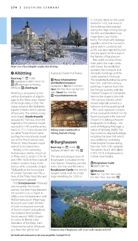 interior contains many tomb- river Salzach. Towering over the + Burghausen Castle