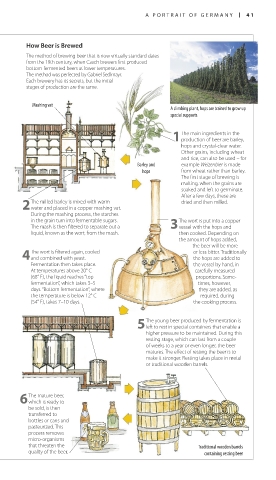 liquid, known as the wort, from the mash. then cooked. Depending on