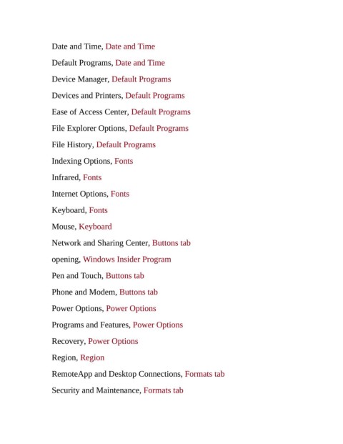Default Programs, Date and Time