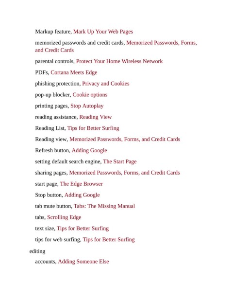 sharing pages, Memorized Passwords, Forms, and Credit Cards