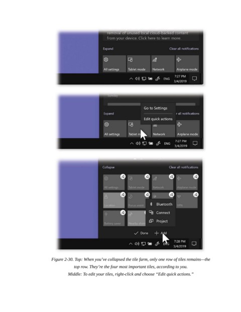 Middle: To edit your tiles, right-click and choose “Edit quick actions.”