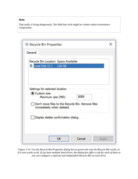Figure 3-13. Use the Recycle Bin Properties dialog box to govern the way the Recycle Bin works, or