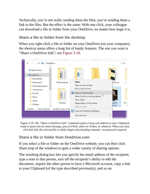 “Share a OneDrive link”; see Figure 3-18.
