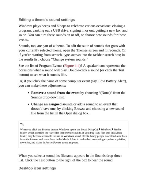Sounds, too, are part of a theme. To edit the suite of sounds that goes with