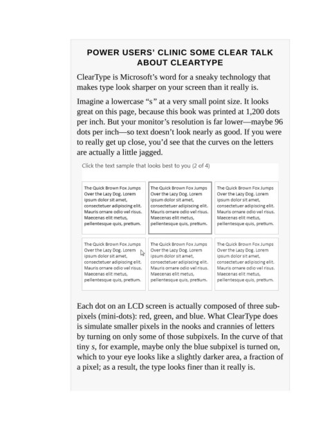 pixels (mini-dots): red, green, and blue. What ClearType does