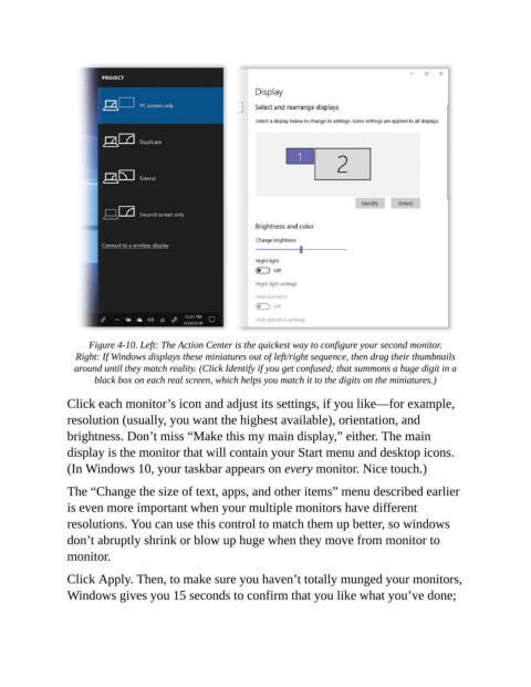 Figure 4-10. Left: The Action Center is the quickest way to configure your second monitor.