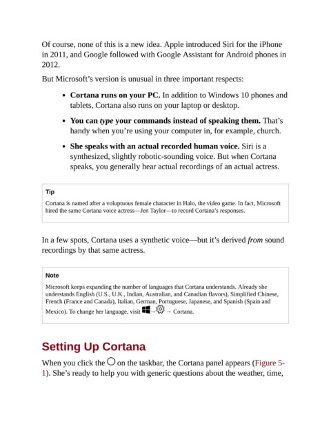When you click the on the taskbar, the Cortana panel appears (Figure 5-