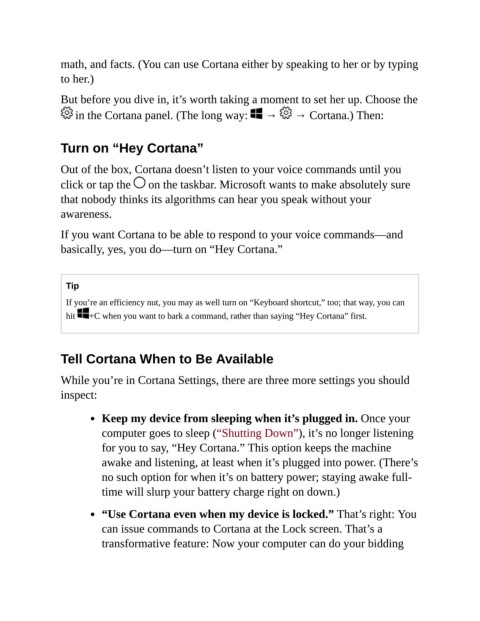 math, and facts. (You can use Cortana either by speaking to her or by typing