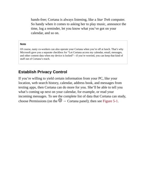 choose Permissions (on the → Cortana panel); then see Figure 5-1.