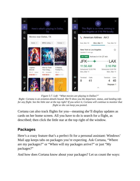 Mail app keeps tabs on packages you’re expecting. Ask Cortana, “Where