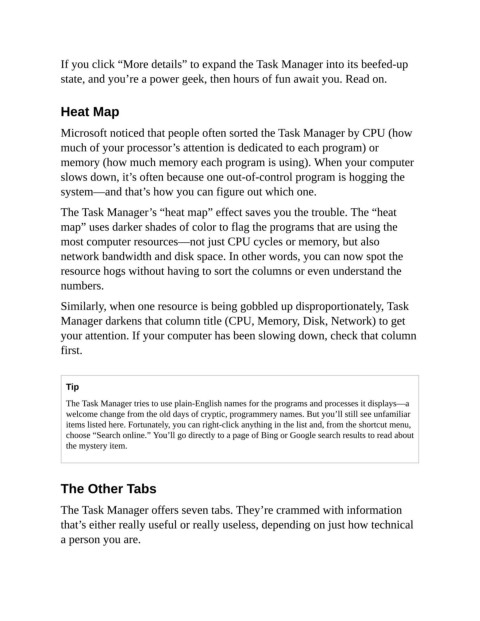 The Task Manager tries to use plain-English names for the programs and processes it displays—a