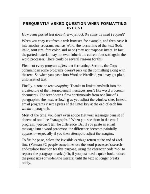italic, font size, font color, and so on) may not reappear intact. In fact,