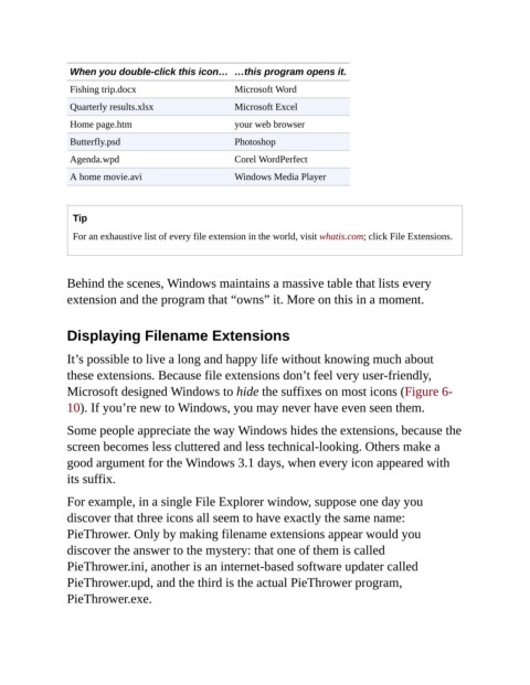 Microsoft designed Windows to hide the suffixes on most icons (Figure 6-