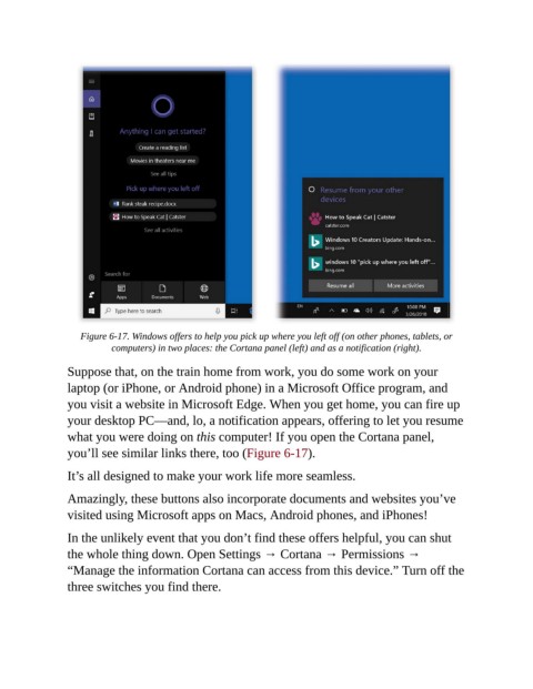 Figure 6-17. Windows offers to help you pick up where you left off (on other phones, tablets, or