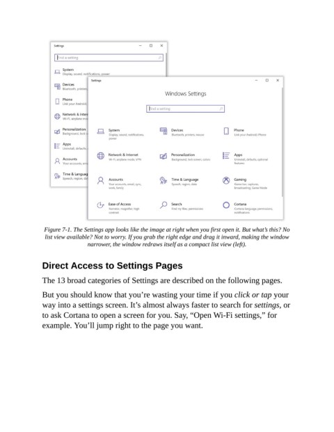 Figure 7-1. The Settings app looks like the image at right when you first open it. But what’s this? No