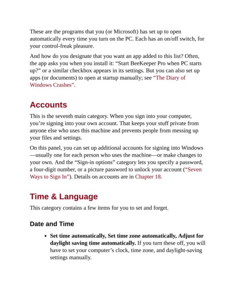 Ways to Sign In”). Details on accounts are in Chapter 18.