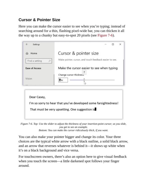 Figure 7-6. Top: Use the slider to adjust the thickness of your insertion-point cursor; as you slide,