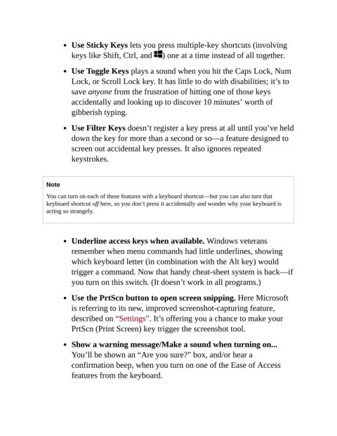 You can turn on each of these features with a keyboard shortcut—but you can also turn that