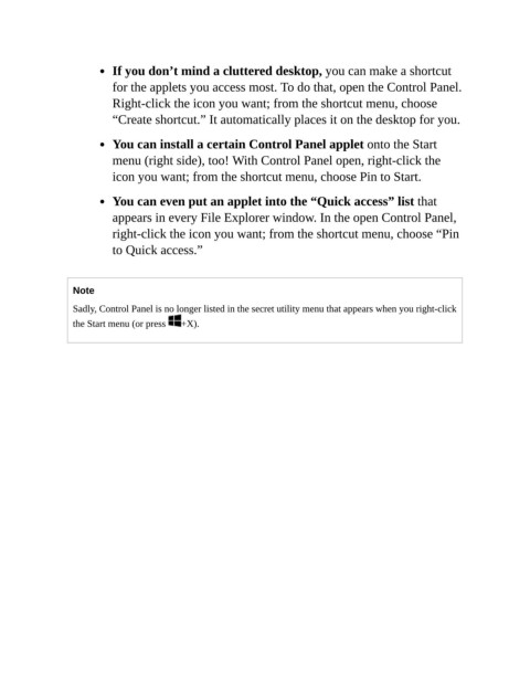 for the applets you access most. To do that, open the Control Panel.