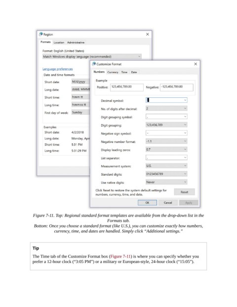 Bottom: Once you choose a standard format (like U.S.), you can customize exactly how numbers,