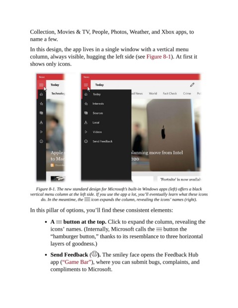 Figure 8-1. The new standard design for Microsoft’s built-in Windows apps (left) offers a black