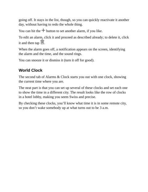 To edit an alarm, click it and proceed as described already; to delete it, click