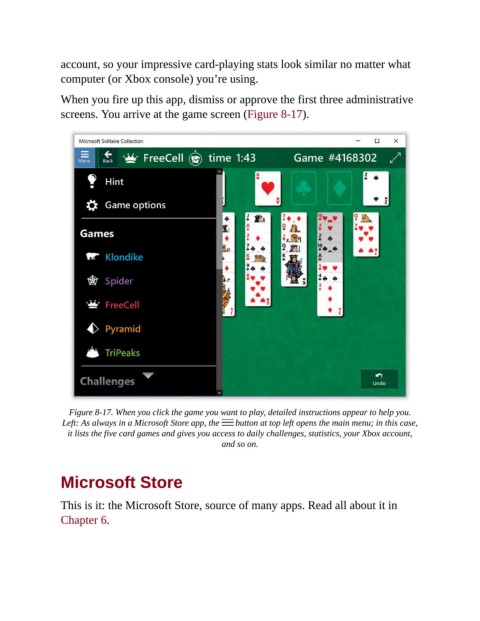 it lists the five card games and gives you access to daily challenges, statistics, your Xbox account,