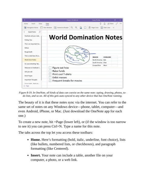Figure 8-19. In OneNote, all kinds of data can coexist on the same note: typing, drawing, photos, to-